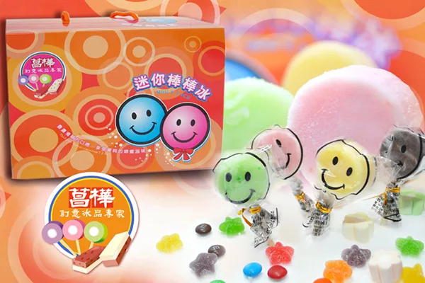 以微笑圖樣包裝的迷你棒棒冰讓人一看就心情大好,外表像小枝的棒棒糖,一口一根,吃起來非常方便,也是小朋友的最愛。迷你棒棒冰有多種口味,